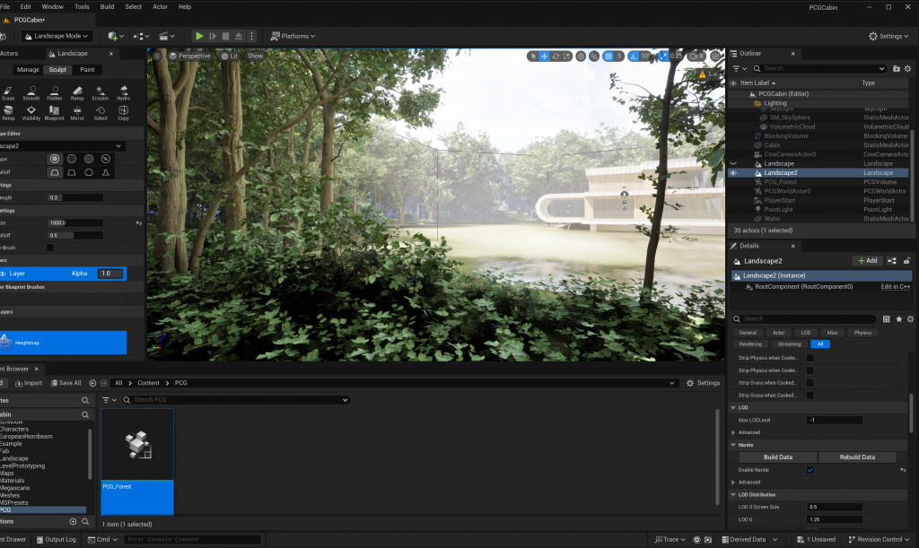 The terrain was created using Gaea. I then imported the high map into Unreal.