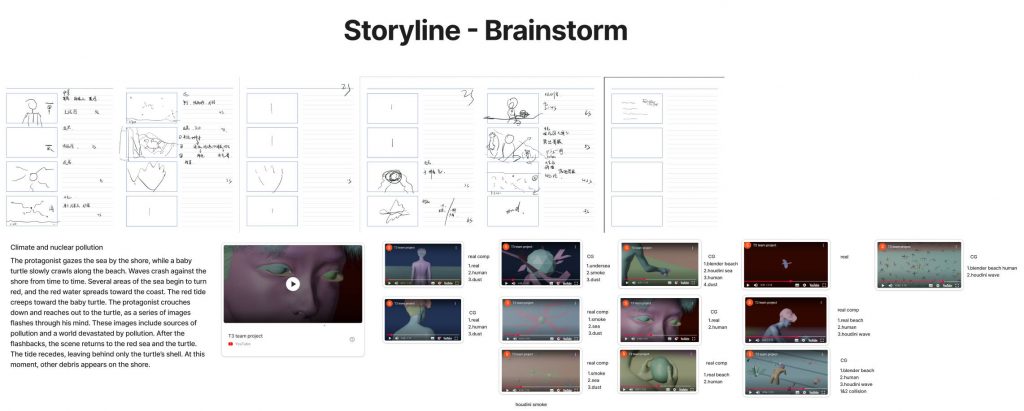 I collected photographic references and tourist footage, which informed the design. These are real photos of sea turtles that I found, as well as real footage of their habitat in Japan captured on tourist videos.