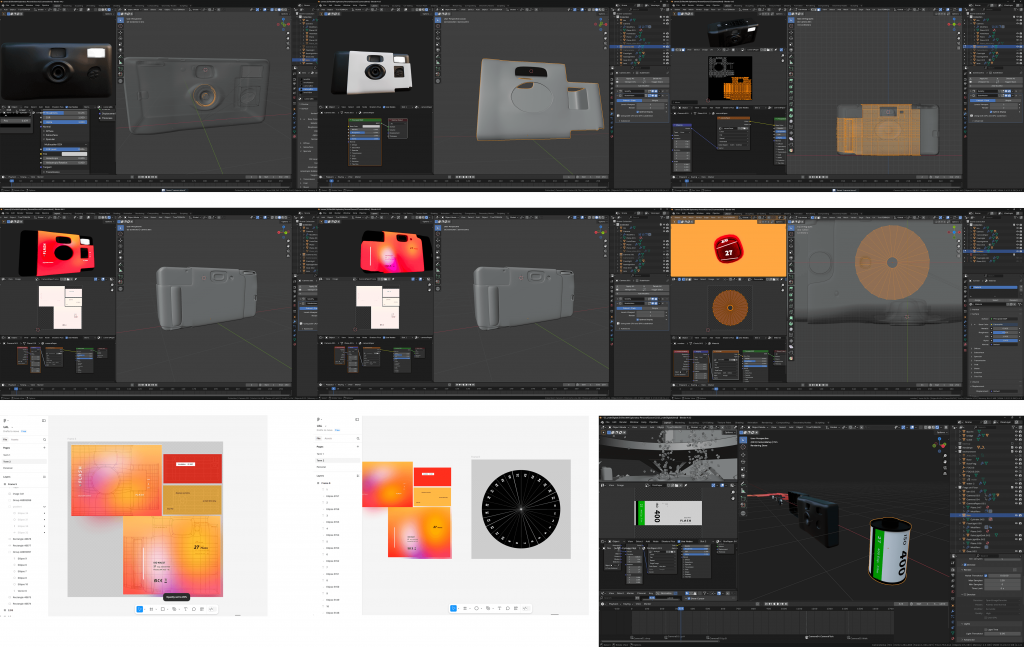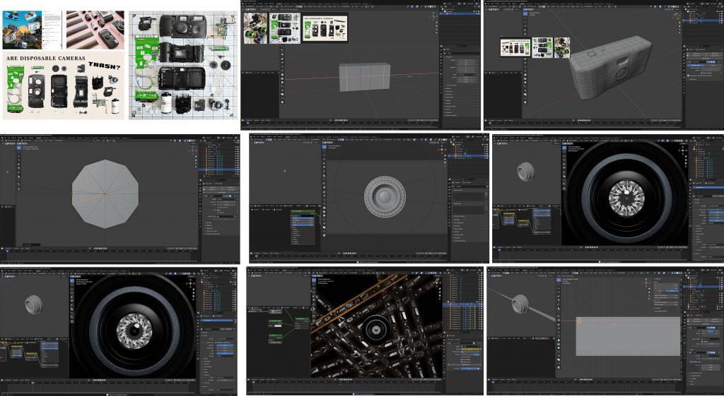 - Disposable camera: modelled from scratch in Blender with detailed research into real components.